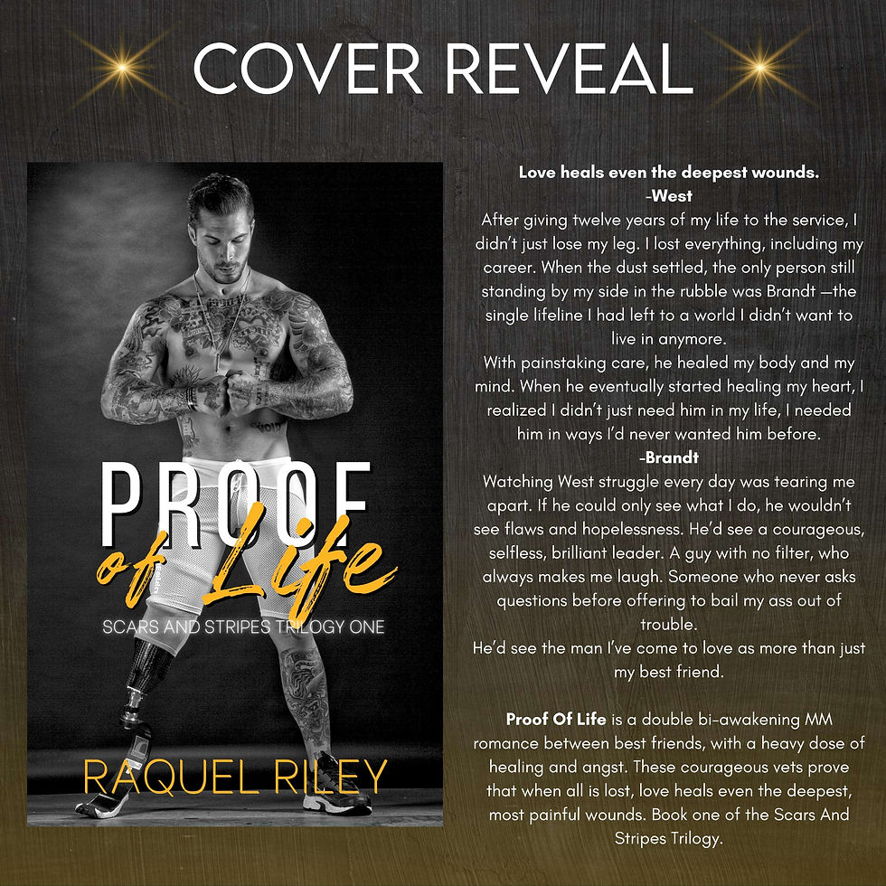 Raquel Riley cover revealMolly MartinJan 13, 20241 min readHappy Cover Reveal Raquel RileyProof of Life out March 21stProof Of Life: An MM Hurt Comfort Romance (Scars And Stripes Trilogy Book 1) https://a.co/d/giAt1dv