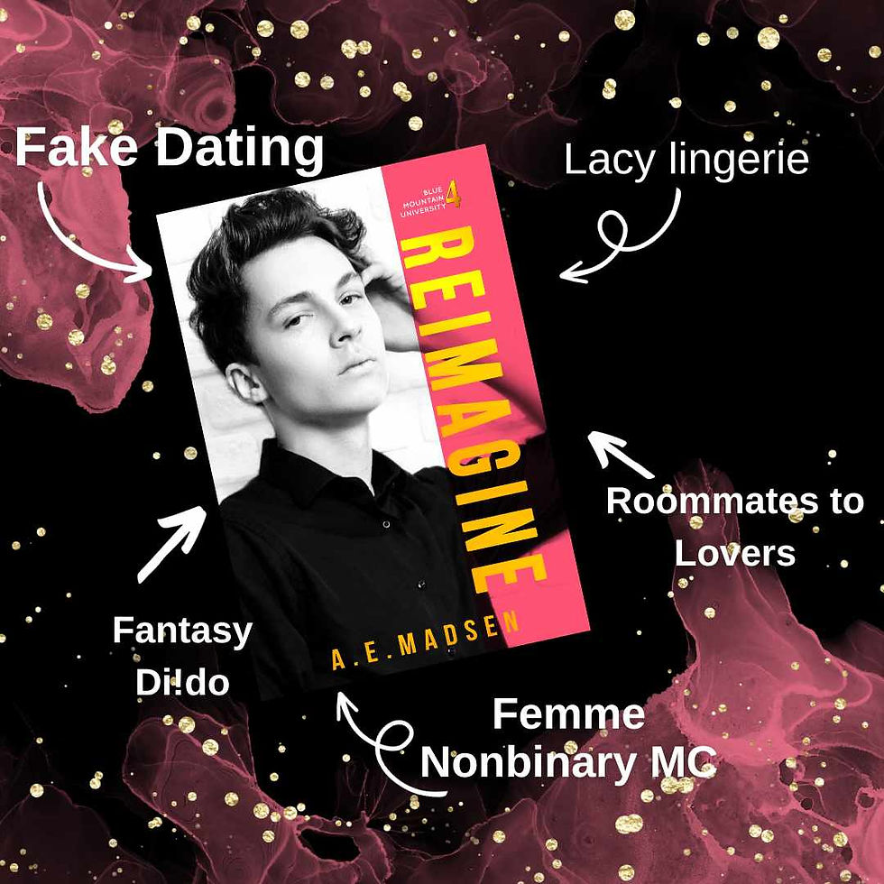 Reimagine is a MX pan-awakening roommates to lovers romance novel featuring a femme nonbinary main character and the man who loves them just the way they are. Although this is book four of the series it does standalone.